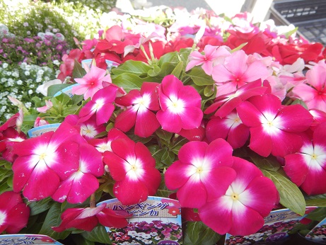 外の花苗コーナーにはニチニチソウがド~ンと入荷してます♪♪シーズンですね~(≧▽≦)暑いのが得意なニチニチソウですが過湿が苦手ですので、水はけのいい土地に植えてもらって、水やりもできればあまりお花の上からかけないほうが喜びますよ(*´▽`*)