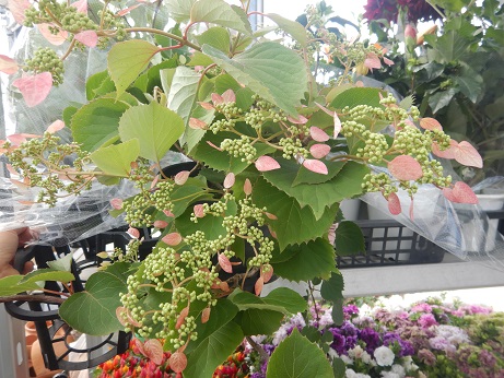 アメリカアジサイが楽しいシーズンになってきました(*´▽`*)ベーシックな『アナベルを』筆頭に、ルビーのアナベルや新品種『グランデピンク』『ミディピンク』『グランデクリーム』『ミディライム』『プティクリーム』『プティガーネット』などなどアナベルファミリーが勢ぞろいしてます( *´艸`)まだ咲いてるのを見たことない品種ばっかりなので、咲くのが楽しみです(≧▽≦)