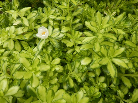 ちょっと珍しい斑入りのポーチュラカ『ライム&チーズ』斑入り葉に白花で涼しげな雰囲気(*´▽`*)