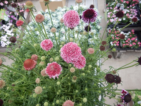 今週のおすすめは超きれいな株のスカビオサ『スクープ』色もちょっとアンティーク色でかっこいいの♪♪首が伸びるから切り花にも素敵♪♪