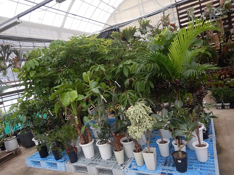 花みどり、観葉コーナー拡大中!!通常の観葉植物コーナーに加え、野菜コーナー奥に大型観葉植物たちが並び始めました♪♪