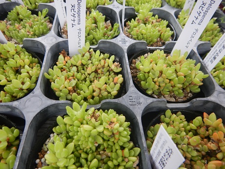 だいぶ少なくなってますが大人気のセダム『アップルベリー』や『斑入り子持ち蓮華』、あと、塊根のオーニソガラムもお花咲いててかわいいの(≧▽≦)