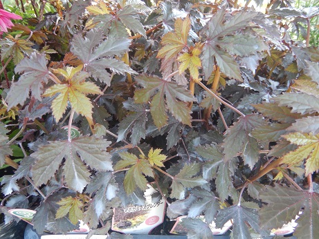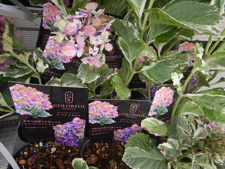 こちらも最新品種、アジサイ『スパイス』。斑入りの葉とすごい色合いのお花がステキ( *´艸`)地植えすると強剪定もできて大きさも自由に作りこめるみたいです(*´▽`*)紅葉前の新芽もキレイらしく、一年を通して楽しめる面白いアジサイ♪♪最近はアジサイも派手なのね(≧▽≦)