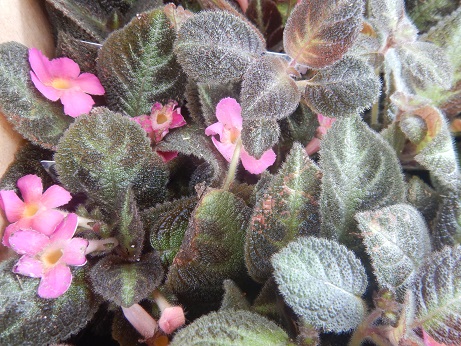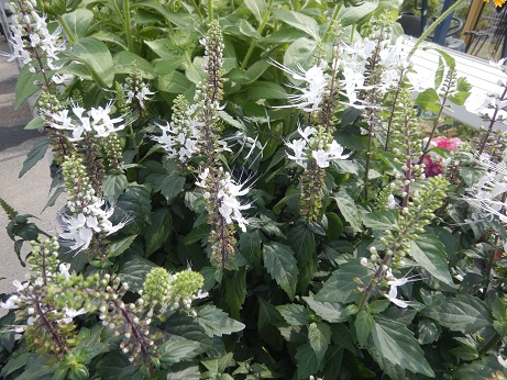 初お目見えは『赤道サクラソウ』( *´艸`)サクラソウという名前ですけど、キツネノマゴ科です(*'▽')インド、マレー半島原産の常緑多年草らしく、暑いのが得意で、花付きがいいらしい(*'▽')斑入りの葉が涼しくみえるかも(*^-^*)