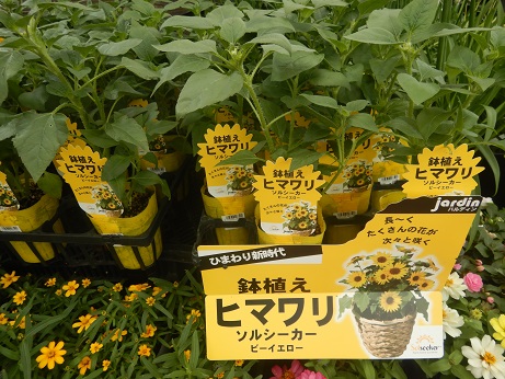 今期新商品!!ヒマワリ『ソルシーカー』が初お目見えです(≧▽≦)分かりやすくヒマワリな子なんですけど、小枝がいっぱい出るみたいで、小さなヒマワリがいっぱい咲くみたい( *´艸`)今までで言うと、お花の雰囲気は『サンフィニティ』に近い感じですが背丈が大きくなりすぎなくていいかも(*^-^*)個人的にこの品種は結構期待してます( *´艸`)