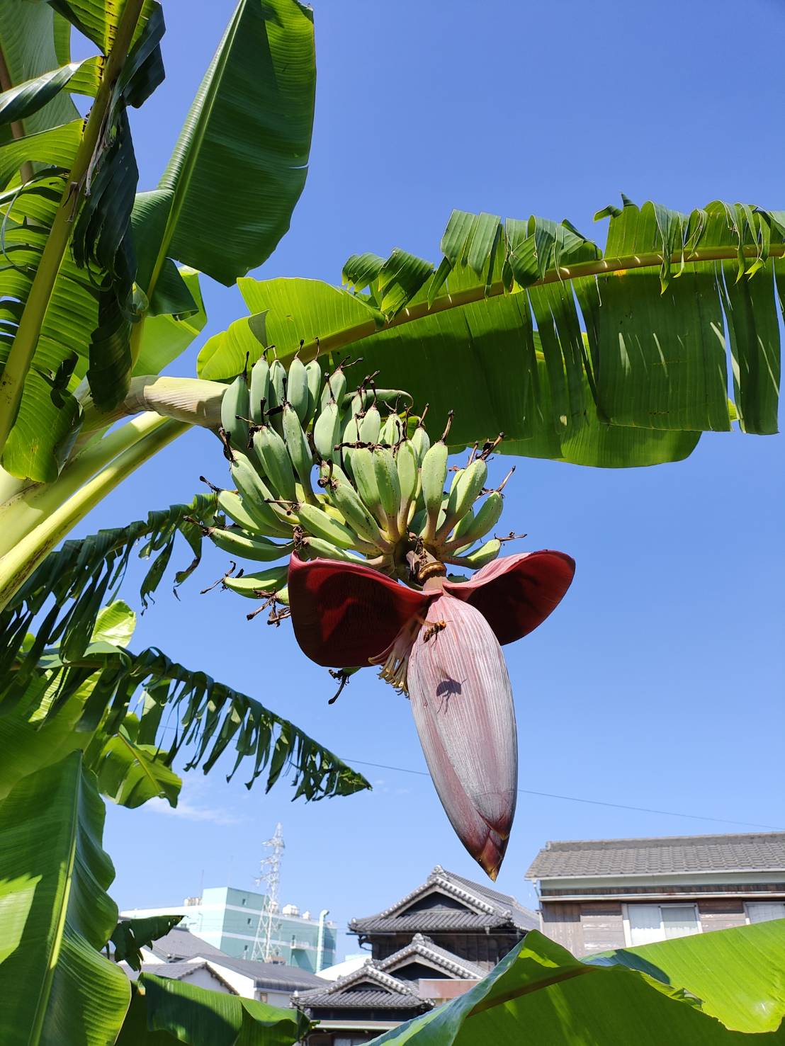 …って喜んでいたんですが…写真よく見てください…(^^;)バナナの花のところに怪しい影が…この子、スズメバチじゃないですか!!??( ;∀;)やばい、怖い子や(^^;)ただの通りすがりであればいいんですけど…。