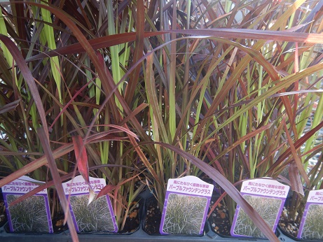 秋のリーフの定番『パープルファウンテングラス』庭植でも寄せ植えでもかっこいいリーフです(≧▽≦)黒っぽい穂が出るのもステキ(*´▽`*)