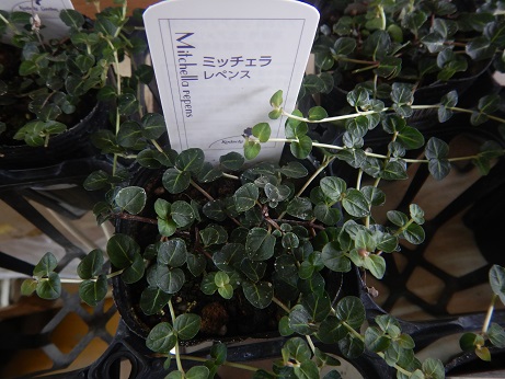 ちょっと珍しいリーフ…観葉植物になるのかなぁ…『ミッチャラ レペンス』深いグリーンのリーフなんですけどちょっと伸びてきます(*^-^*)で、白いお花咲いて、赤い実ができます(≧▽≦)ハンギングとかにすると可愛いかも♪♪(≧▽≦)」