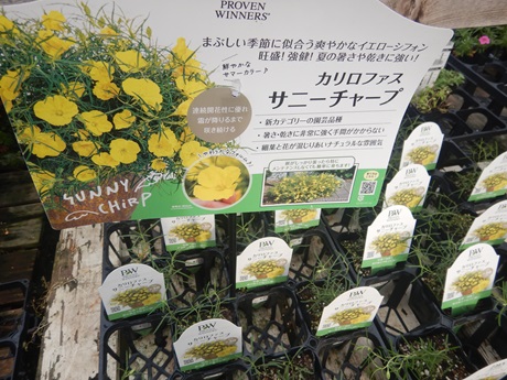 今年、初お目見えした新しい園芸品種『カリロファス サニーチャープ』が入荷してます(*'ω'*)この子がけっこう暑さ寒さに強いらしくておススメらしい(≧▽≦)…ちょっと気になる品種です(≧▽≦)コバも植えてみようかな♪♪