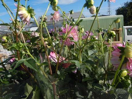 大輪系のダリアが何種類か入ってます(*'▽')とってもきれいな苗を作る農家さんなので、きれいにまとまってて色味もステキ♪♪迫力あります( *´艸`)
