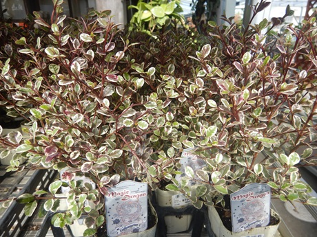 冬の葉物では一番人気じゃないかな?アンティークピンクの葉が可愛いロフォミルタス『マジックドラゴン』♪♪寄せ植えに一株入れるだけで、高級感がグッとアップする色味です( *´艸`)庭木としては夏の暑いのが苦手なのであまりお勧めできません( ;∀;)このシーズン全開で楽しみましょ~( *´艸`)