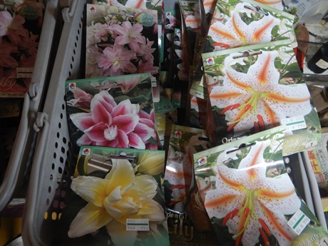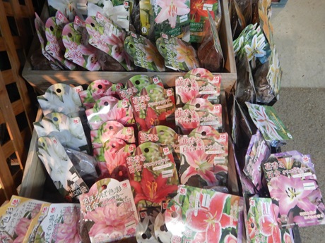 球根コーナーにユリが揃ってきました(*´▽`*)八重咲きのユリとか超かわいいの( *´艸`)…今年は植えてみようかな…(*‘∀‘)