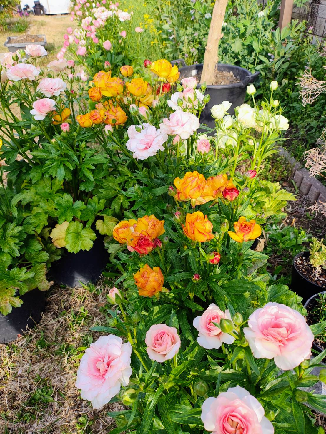 一年でけっこう大株に育てられることができるラックスラナンキュラス。鉢植えで育てるなら、お花が枯れ次第ほったらかしにするのがおススメ。梅雨の長雨の時は屋根の下がいいんですけど、あとは雨当たっても大丈夫。夏にガンガンに乾かしても休眠してちゃんと乗り越えてくれるみたいです。