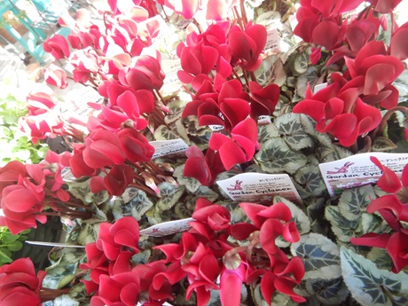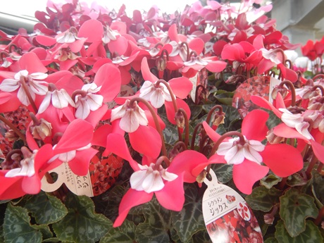 シクラメンコーナー、ジックスやディープマゼンタタキシードがかっこいい(*´▽`*)ユーフォルビア『白雪姫』はこの時期しか出てこない真っ白の葉がキレイな子♪♪