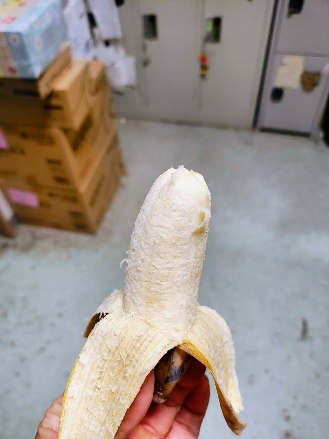 むいてみると、これが結構キレイなんですよ。腐ったりしてなくて、ちゃんとバナナ。