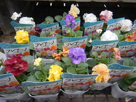 初心者さんには育てやすいビオラ『DJ』がおススメ(≧▽≦)冬中咲いてくれて春も盛大に咲いてくれるので超お手軽です( *´艸`)先日入荷して超人気だった『ロカハーツ』、後、品種限られてますけど『見元ビオラ』も入荷しました(*´▽`*)パンジービオラコーナーが華やか~(≧▽≦)
