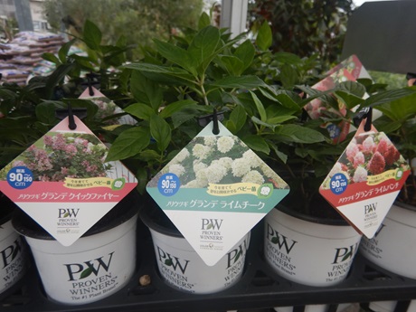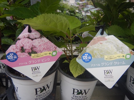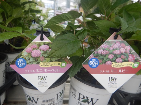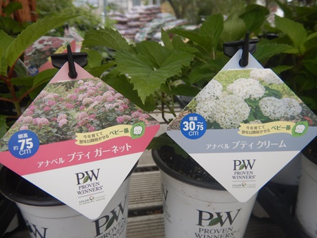 最近シュラブ系につよいPWから、ノリウツギ各種、アナベル各種入ってます( *´艸`)一通り色が揃ってるので、お庭のスペースと合わせて品種選んでもらえると思います( *´艸`)