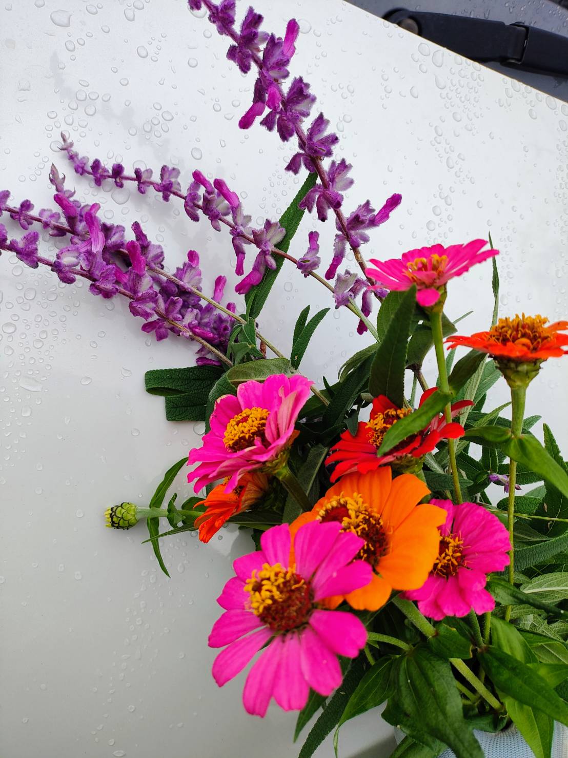 …ということで、今週のコバタケ花束は紫のお花と動きが楽しいアメジストセージに、勝手に種が飛んであちこちからはえてくるジニア(百日草)(*´▽`*)勝手に生えてくるお花のほうが性質が強いのよね…(弱い子ははえてくる時点で勝手に選抜されるので…)