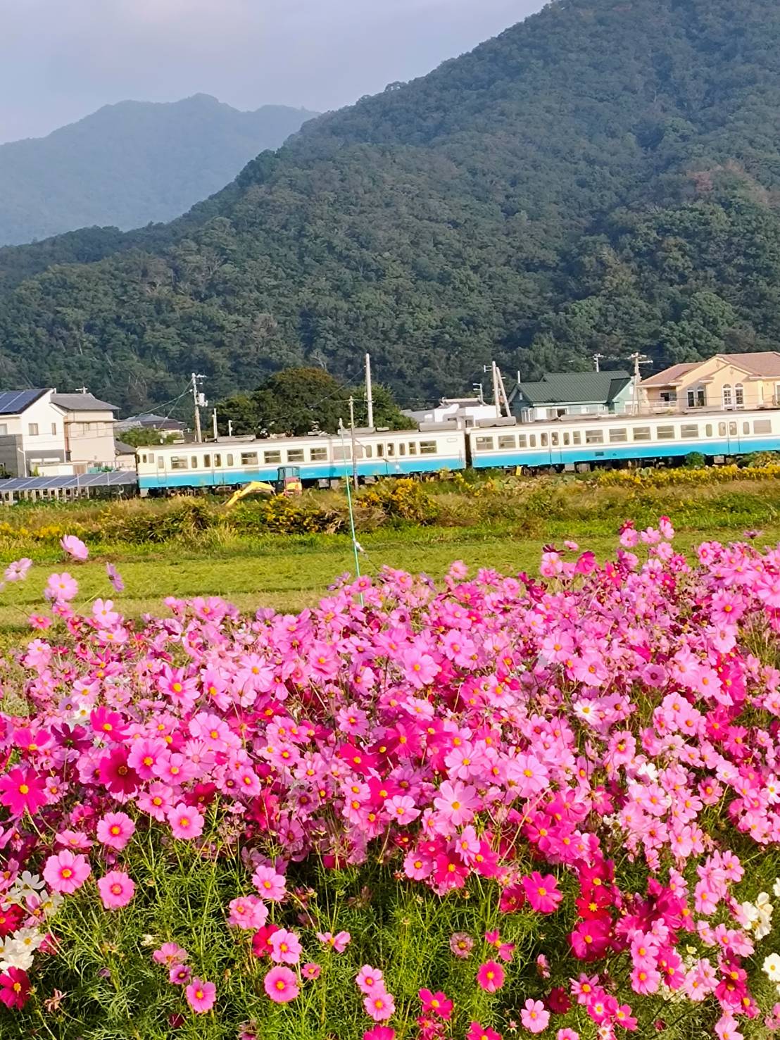 お出かけ途中でステキなコスモス畑見つけました(*´▽`*)鳴門池田線の列車と一緒に♪♪