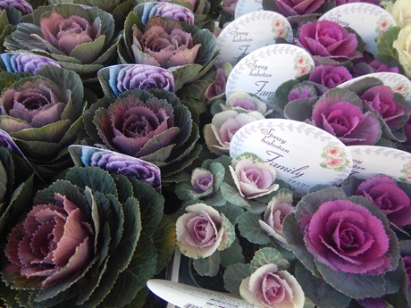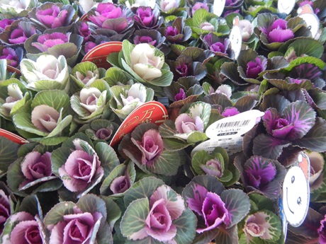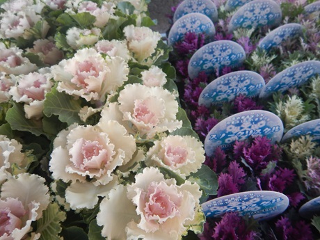 寄せ植えに人気のハボタン達もいろいろ入ってきました(*^-^*)バラバラにしてリングリースに使うのが人気です♪♪ハボタンはとっても強い子で、けっこう土を落として植えても大丈夫なので、小さな鉢やリングリースに使いやすいです( *´艸`)
