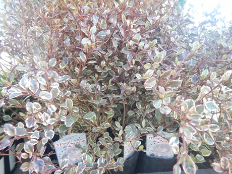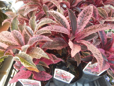 リーフがステキなユーフォルビアやマンリョウ『紅孔雀』、ロフォミルタス『マジックドラゴン』。この時期は寒さで色がはっきり出てステキなの(*´▽`*)