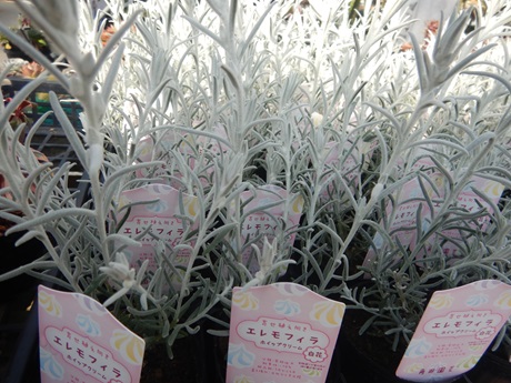 白いリーフ群がキレイな時期ですね(*^-^*)セネシオ『エンジェルウィングス』やオレアリア『アフィン』、エレモフィラの白花『ホイップクリーム』は通常の『ニベア』よりもさらに白のリーフがキレイな子♪♪寄せ植えに使ってみてね♪♪( *´艸`)