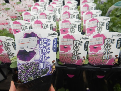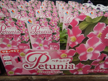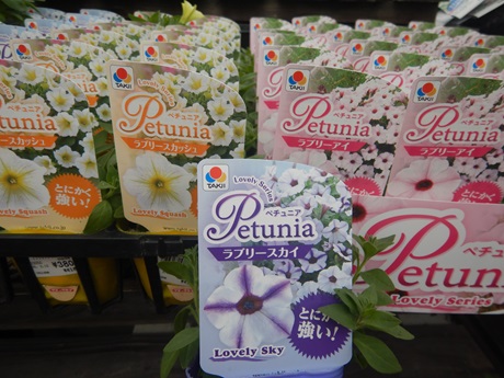 ペチュニア類では育てやすさが魅力の品種群!!ラブリーシリーズとさくらさくらシリーズ。さくらさくらのシリーズは濃いピンクの『桃色吐息』と久しぶりに真っ白の『お雪ちゃん』もいれてみました(*´▽`*)
