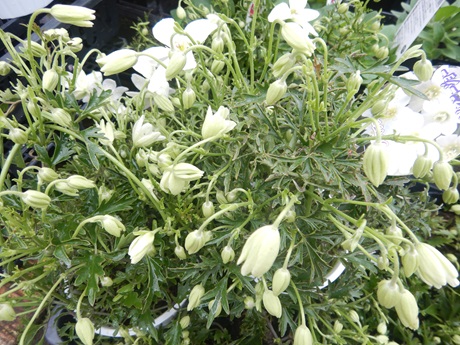 この時期大人気の白いクレマチス『カートマニージョー』&『ペトリエイ』。ペトリエイのほうが小輪なんですけど少しグリーン気味かな。でも両方とも人気の品種(≧▽≦)