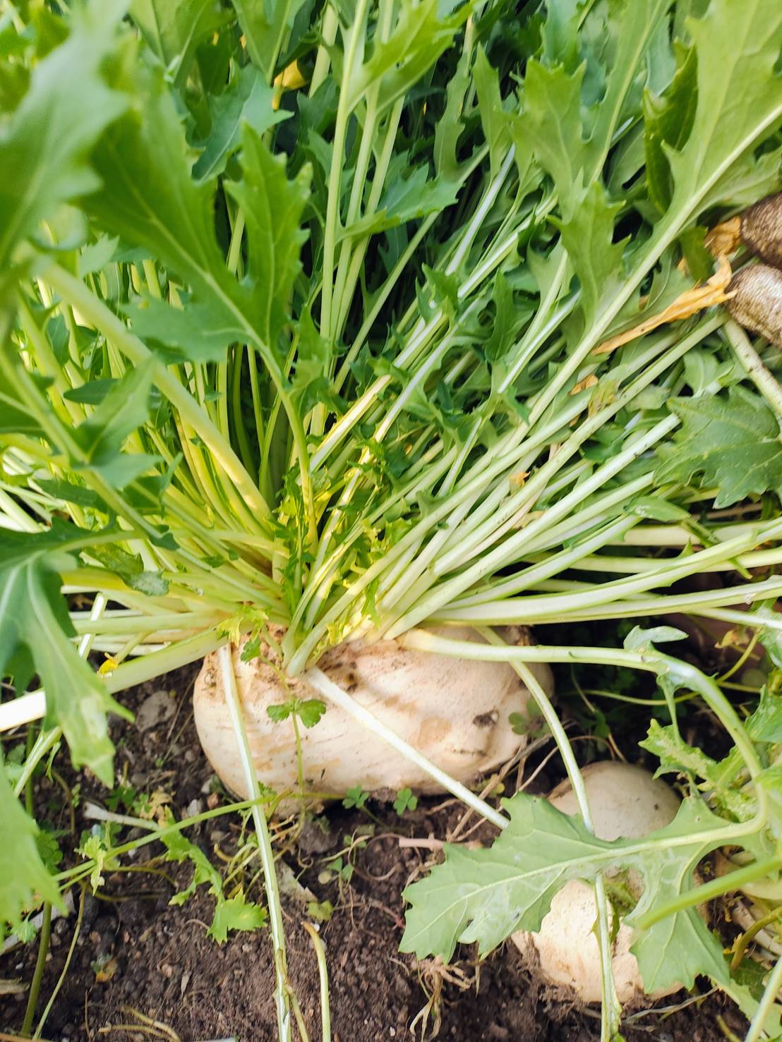 根っこが蕪で、葉っぱが小松菜っていううたい文句のお野菜です。収穫忘れてたらめっちゃ大きくなっててびっくりした(;・∀・)でも、根っこはちゃんと蕪っぽくてお漬物にできる感じ( *´艸`)葉は、どちらかというと水菜なんですけど、鍋に入れたり、胡麻和えにしても美味しかったです♪♪来年も種を入れようと思ってるので、気になる方は育ててみてね♪♪(*´▽`*)