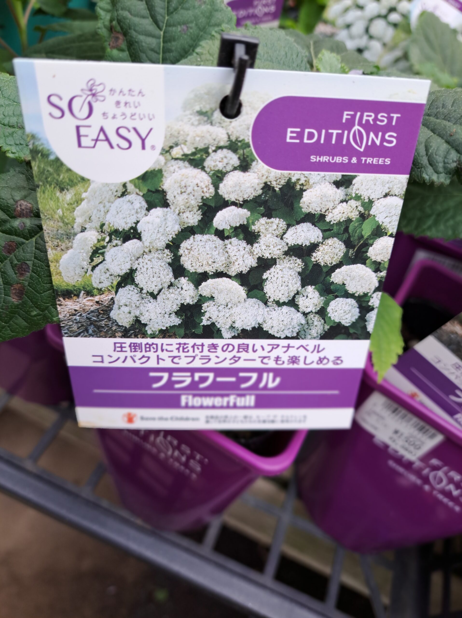 2025年新品種!!アナベル『フラワーフル』入荷しました♪♪(*'▽')コンパクトにまとまるアナベルで、結構な風でも倒伏しないんだって( *´艸`)