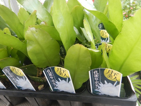 ときどき聞かれるので、入れてみたのは『月下美人』の苗。大きくなると真っ白の大きなお花を咲かせるクジャクサボテンです(*^-^*)月下美人と言われるだけあって、夜の10時くらいから咲いてきて、朝にはお花が終わってしまいますので、なかなかお店でお花を見てもらう機会は少ないんですけどとってもきれいなお花です(*´▽`*)