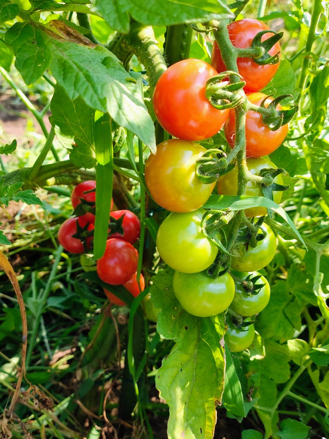 暑さにも負けず、夏野菜がとれ始めました(*´▽`*)ミニトマトって成り方が可愛いと思うの( *´艸`)夏のコバタケの重要な水分源です(*´▽`*)