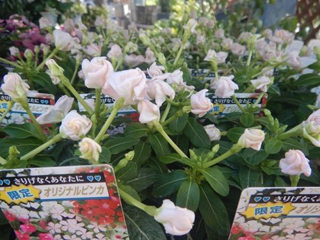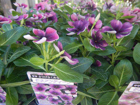 北島園芸さんより、オシャレ色『モネ』『モネアンティーク』『つぼみ咲きメルモ』あと、真っ白できれいな『シラタマ』も入荷してます(*´▽`*)暑いときにもよく咲くニチニチソウはおすすめだよ~(*^-^*)
