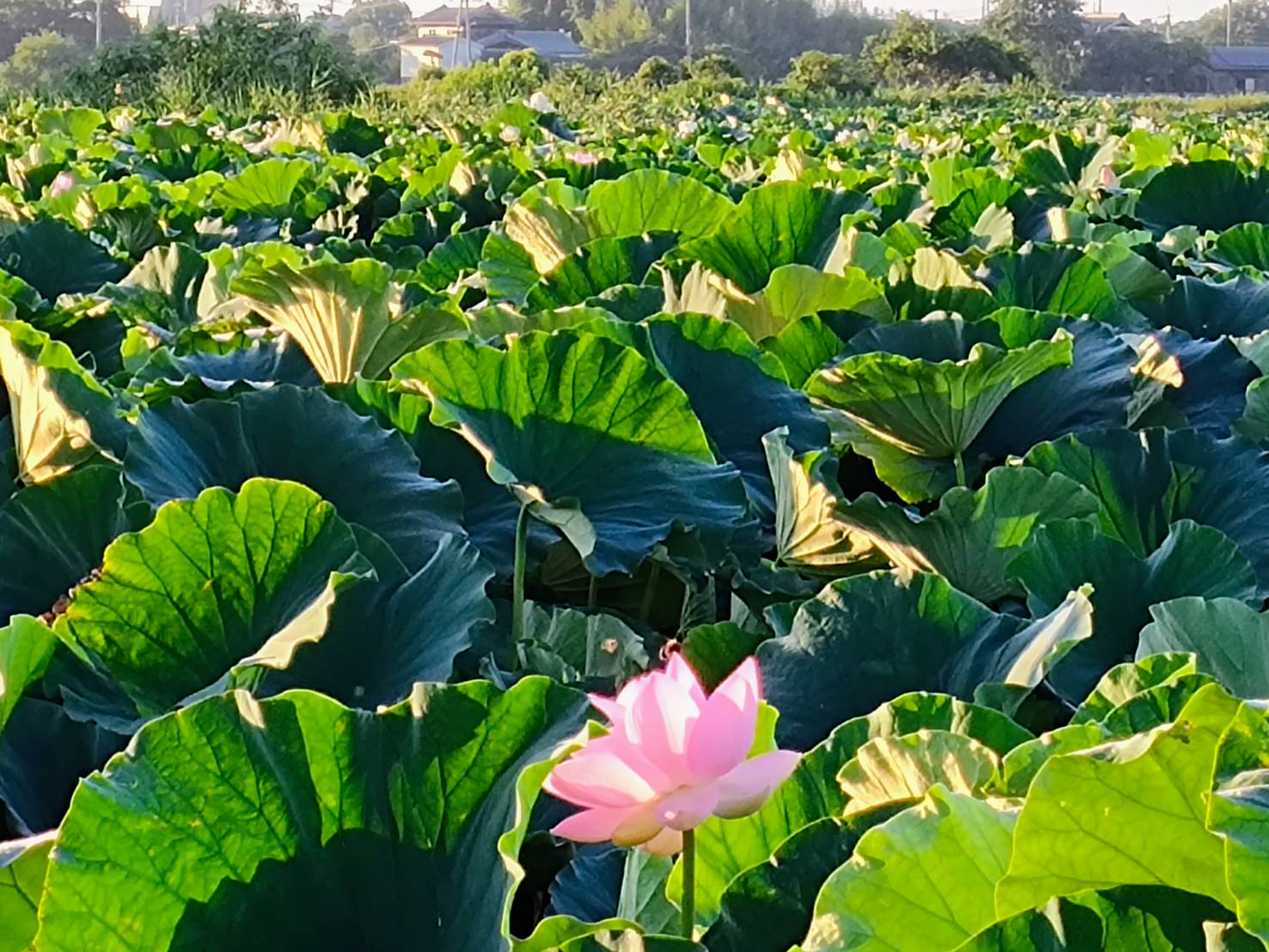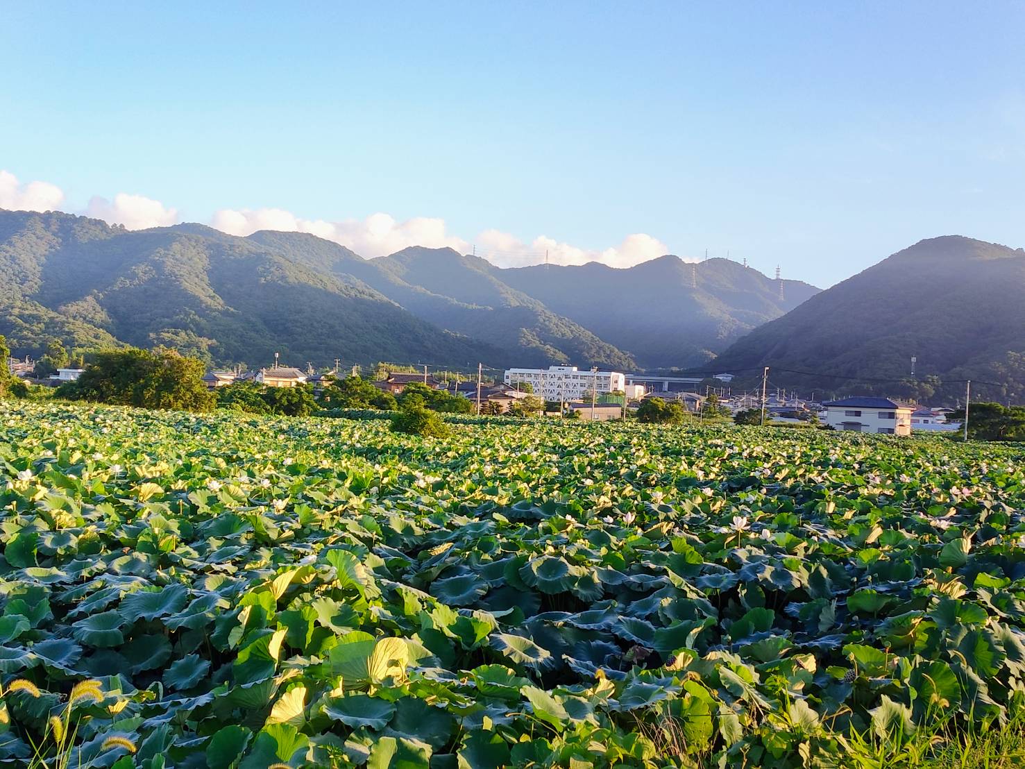 ハス畑は朝日との時と夕日の時がとってもきれいなんです(*^-^*)ちょっとした極楽浄土です( *´艸`)毎日の通勤ルートがハス畑なんですけど、車降りて見ると結構おっきくて迫力あります(*´▽`*)