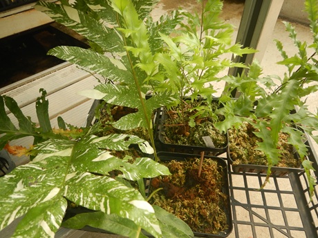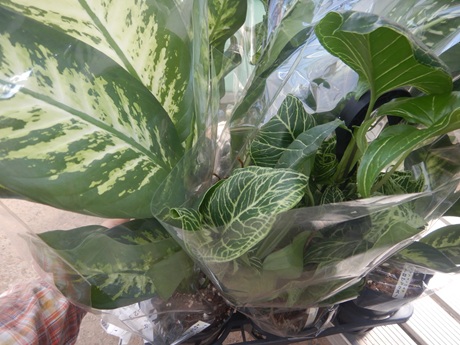 まずは、斑入りちゃんがいろいろ入ってきてちょっと華やかな観葉植物コーナーより