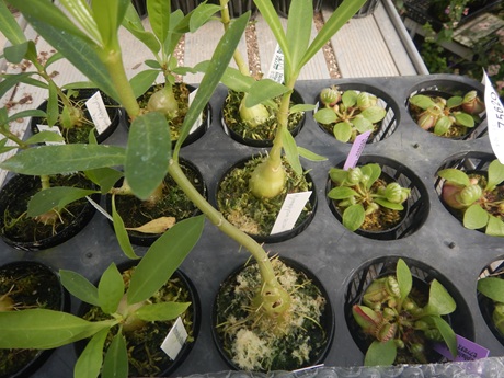 アリシダ(レカノプテリスなどのシダ類)やアリノスダマ(ヒドノフィツムなどの塊根になる種類)があって、見てるだけでも不思議(*'▽')原産地ではアリさんと共生してるみたいですけど、売ってる商品はアリさん入ってませんのでご安心ください( *´艸`)