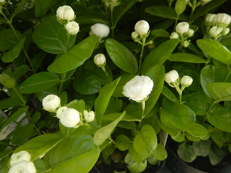ハーブコーナーに八重咲のアラビアンジャスミン『ジェイド』入りました(*^-^*)暑いの得意で、今からでもお花ガンガン咲かせてくれますよ( *´艸`)香り良いし♪♪(*´▽`*)