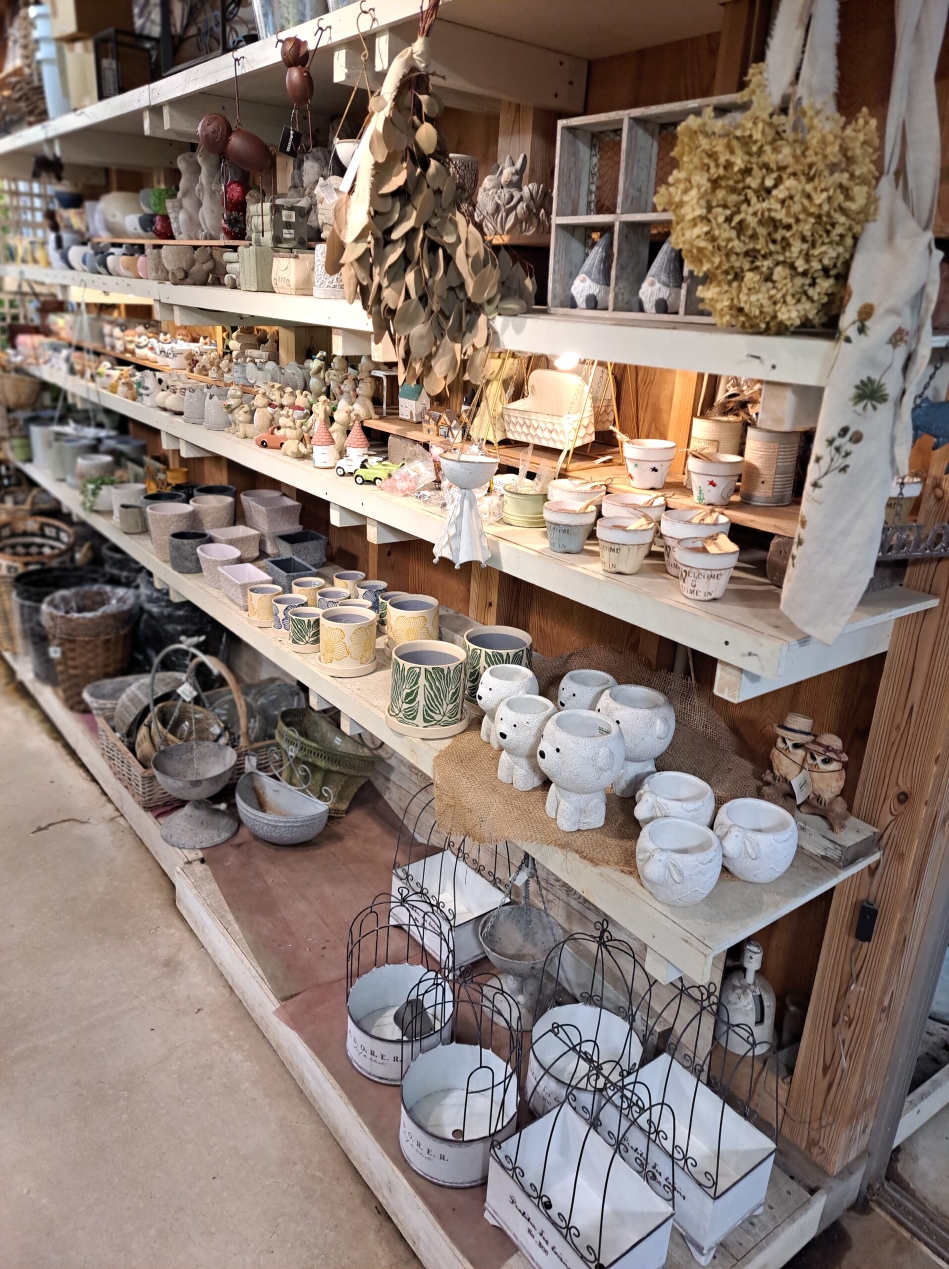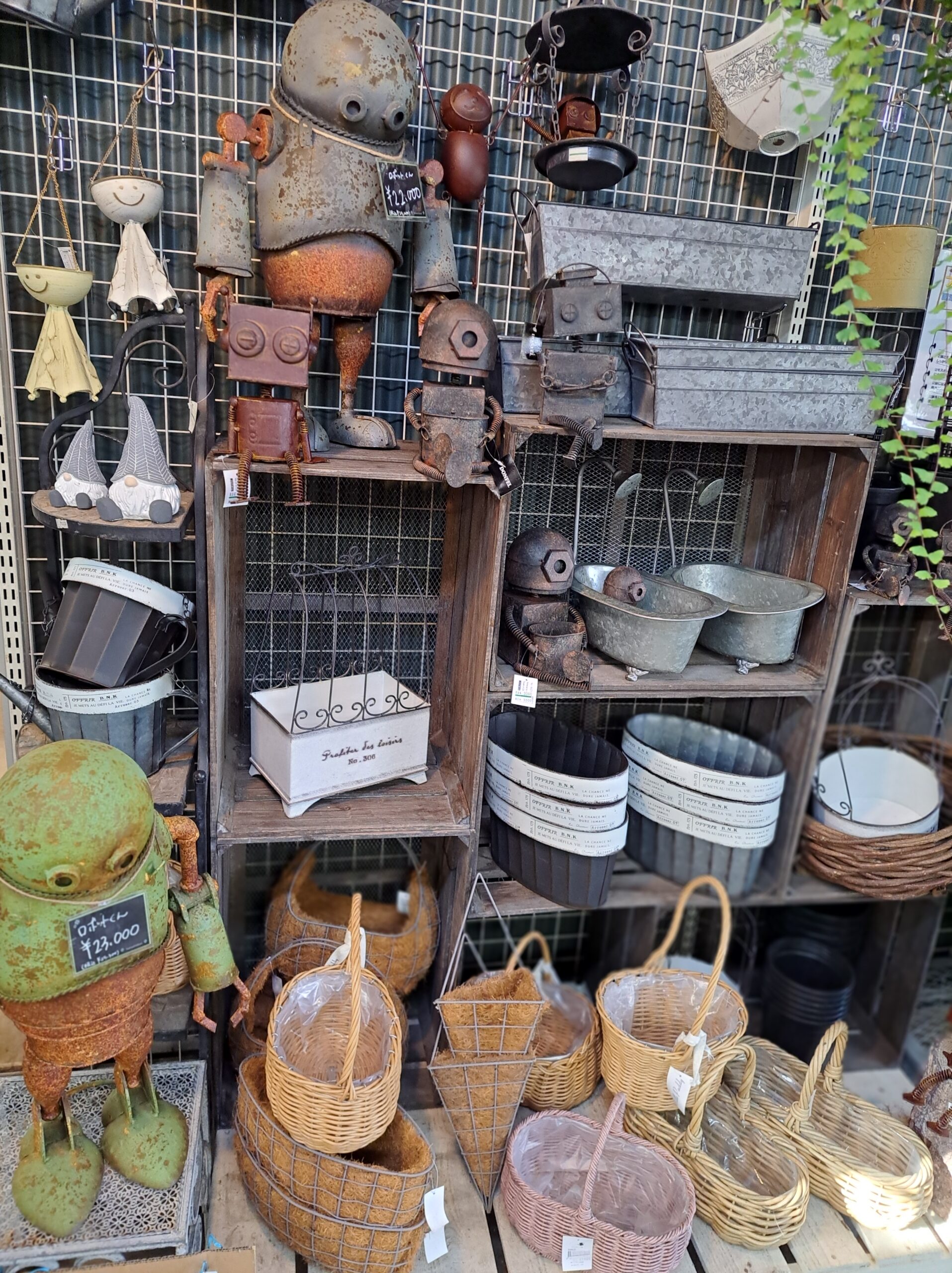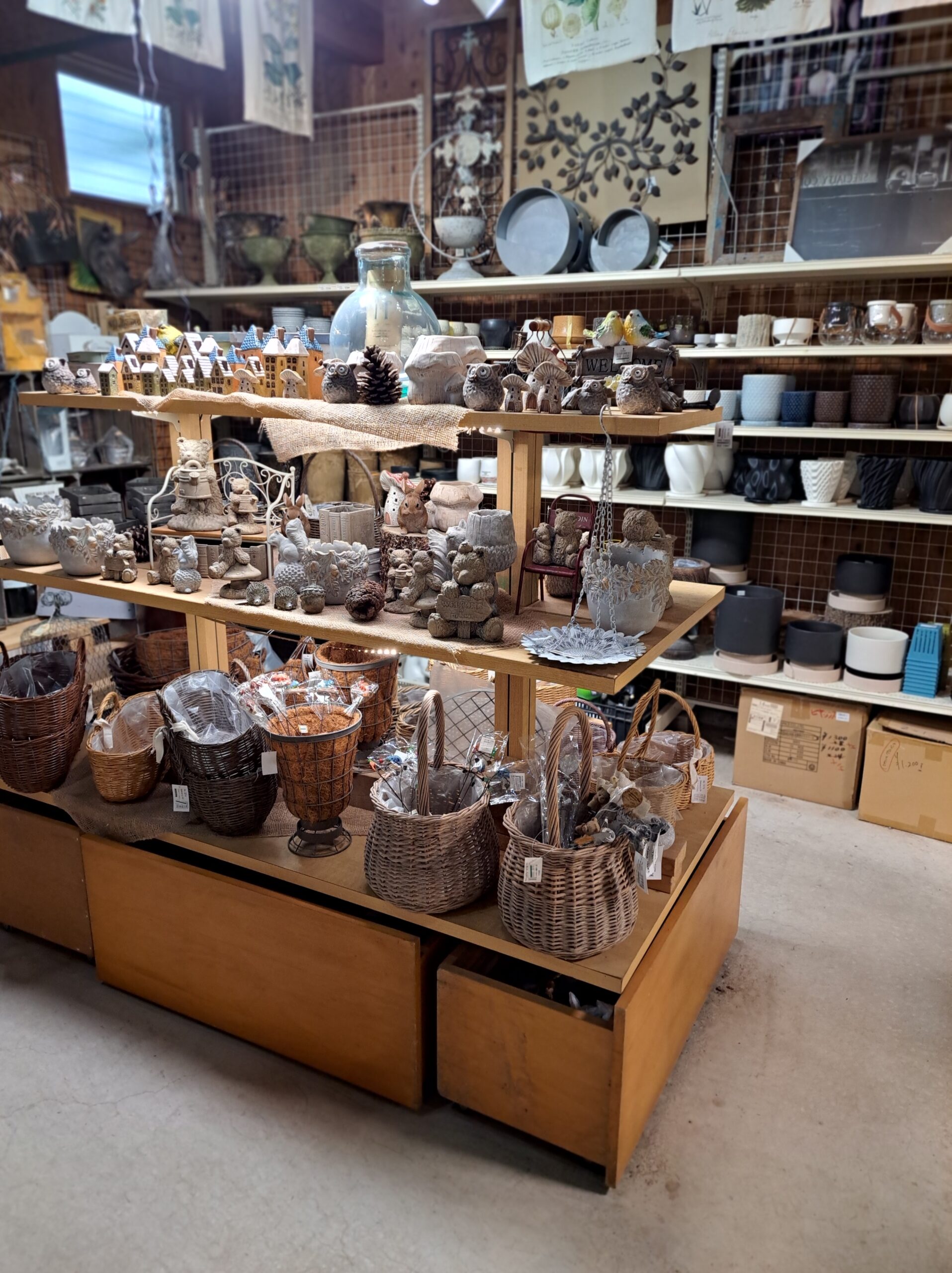 雑貨コーナーがぼちぼち入荷始まっててかわいい子達が並んでます(*^-^*)植物は暑くて扱いにくいから、いい時期になるまで雑貨並べて置くのもいいかもね( *´艸`)
