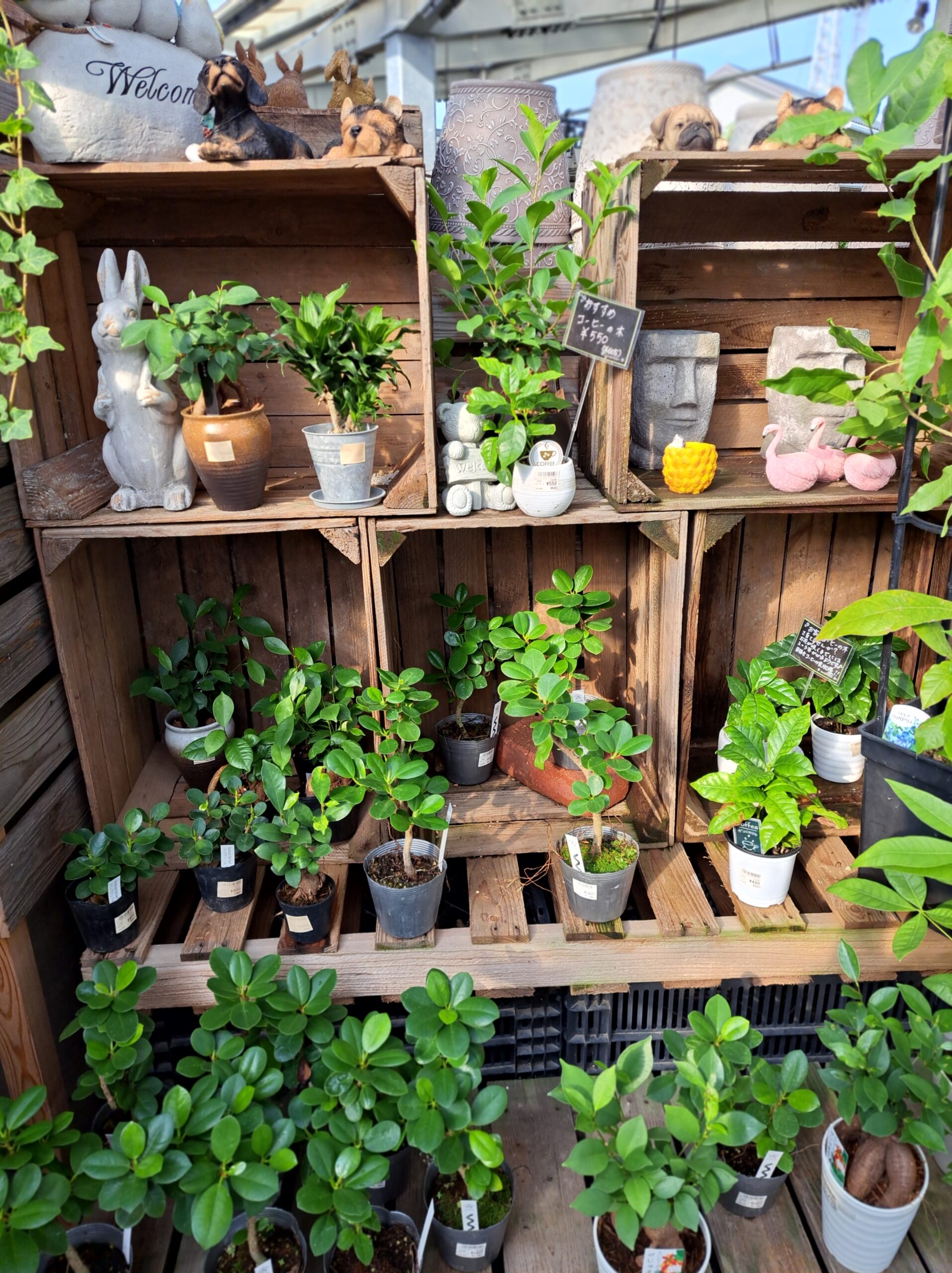 お庭とか植えるとめ~っちゃでっかくなってかっこいいボトルツリー(かっこいいけど、邪魔ですよ?(;・∀・))や、サキシマスオウ、ケルベラなどなど、南国風味の観葉植物達( *´艸`)最近人気のコパンダガジュマルやコーヒーの木も手の平サイズでかわいい(*´▽`*)