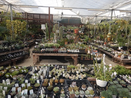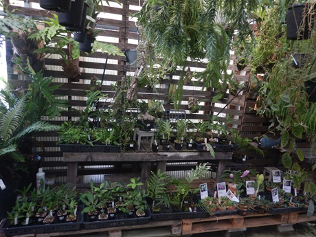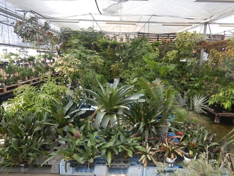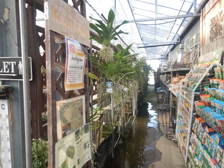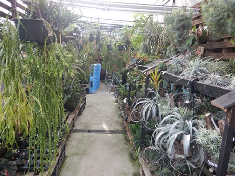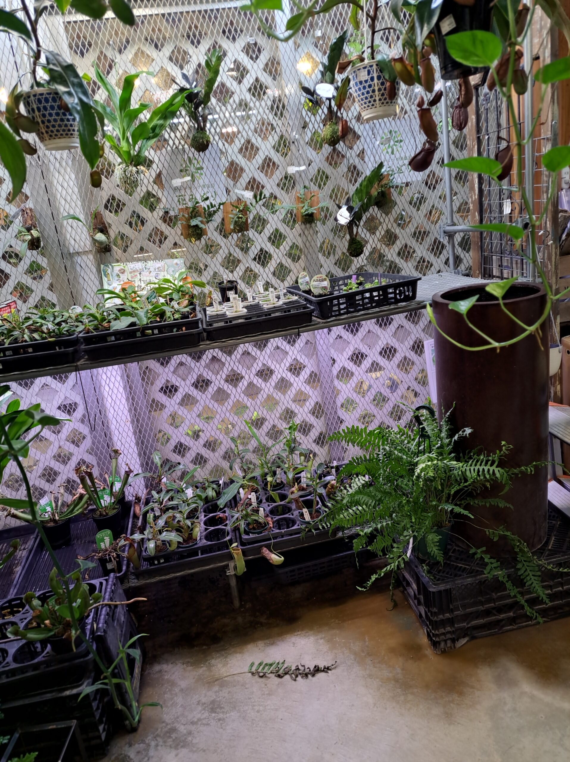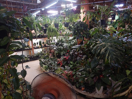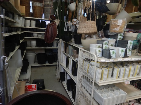 東側の入り口から入ると、モンステラなどのちょっとレアなアロイドコーナー、奥左手に食虫植物コーナー、右手に肥料コーナー、正面にプラスチック鉢のコーナーがあります