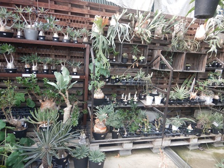 サブ通路真ん中、多肉植物コーナーでは、サボテンや塊根植物たちが元気(*´▽`*)