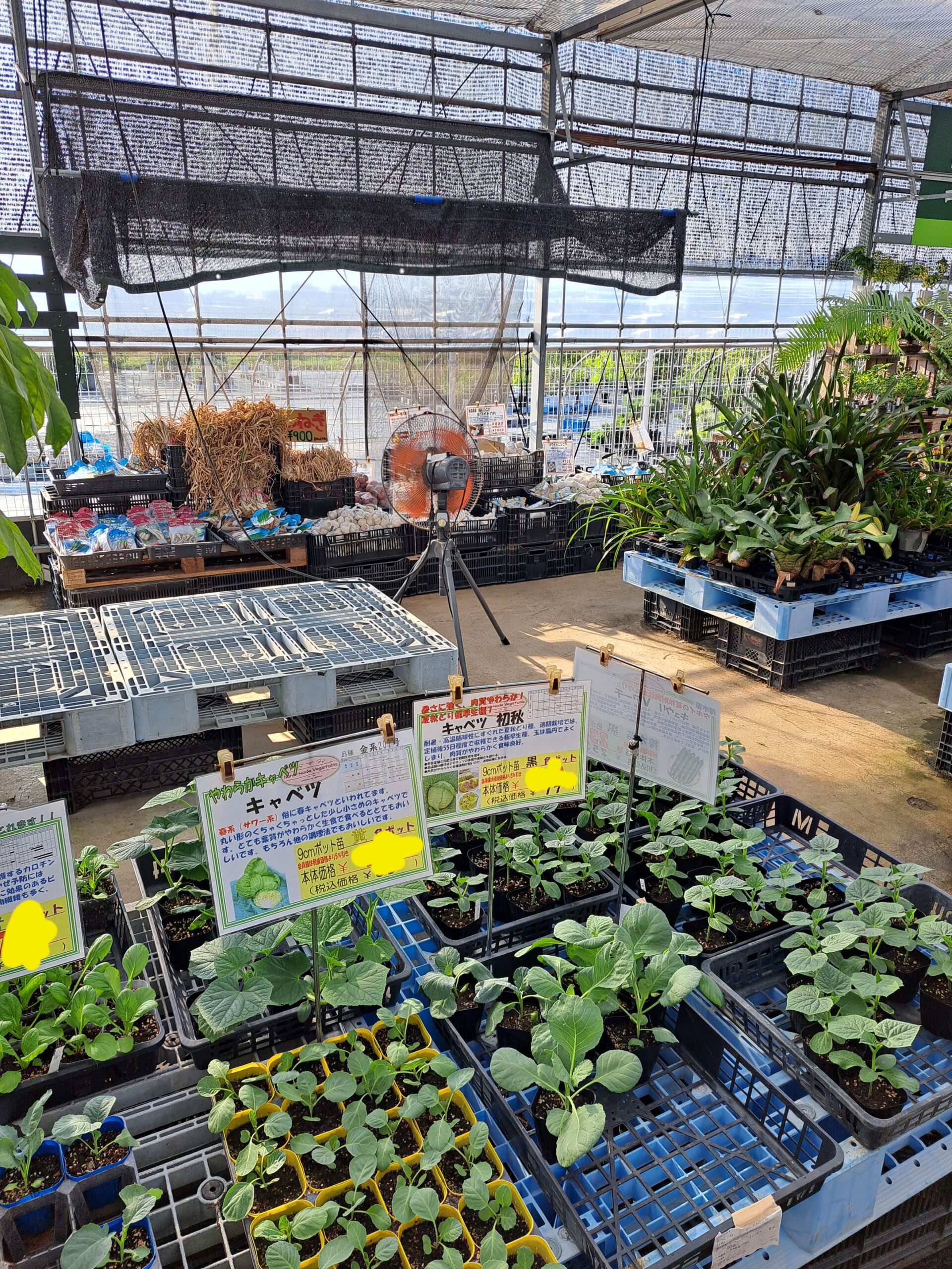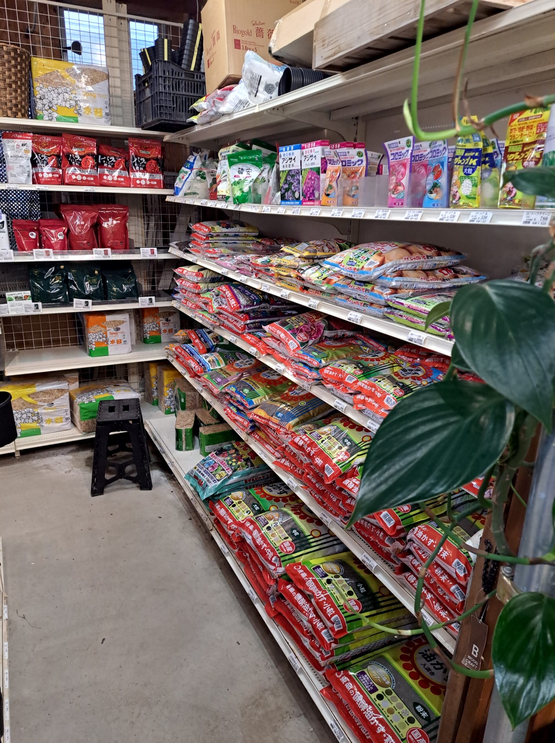 メイン通路つきあたり、野菜コーナーでは、キャベツやブロッコリーの苗、あと、夏植えのジャガイモ種や球根野菜なんかが入り始めてます(*^-^*)