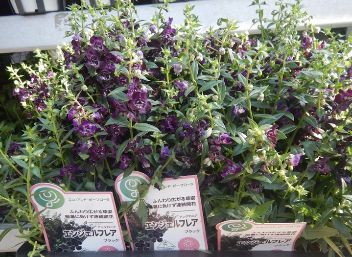初お目見えはアンゲロニアのブラック!!『フレアブラック』濃い紫なんでしょうけど、黒に近くてかっこいい♪♪秋の寄せ植えに重宝しそうです(*´▽`*)