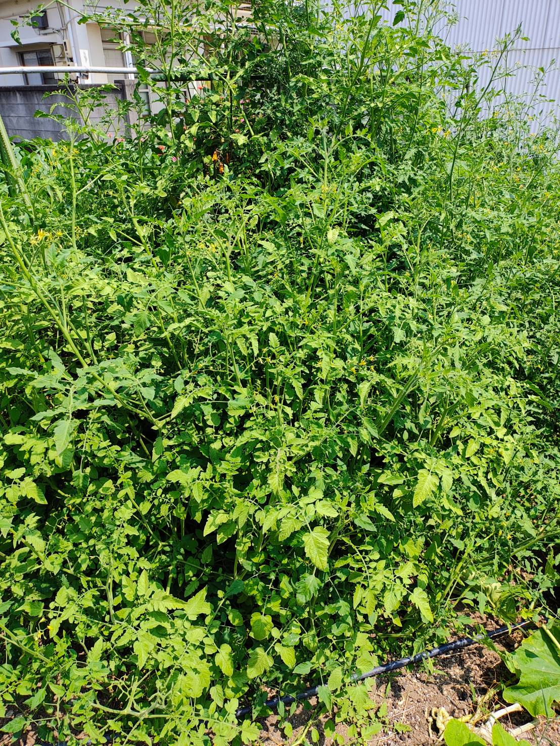 ちなみに、コバタケのトマトはある一時期を過ぎると脇芽取りを忘れて放置されます(;・∀・)…だって面倒になるんだもの(;・∀・)