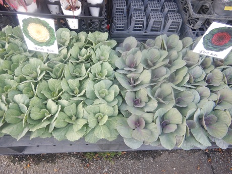 冬のお花に先駆けて、急いで植えたいハボタン、入荷してます(*´▽`*)お庭に植えて大きく育てたい方は、今のうちに植えておくとでっかく育ちます(*^-^*)ハボタンは色づく11月あたりから大きくならなくなります。寄せ植えやリングにぎゅうぎゅうに詰め込むのはこの時期からがおススメ( *´艸`)
