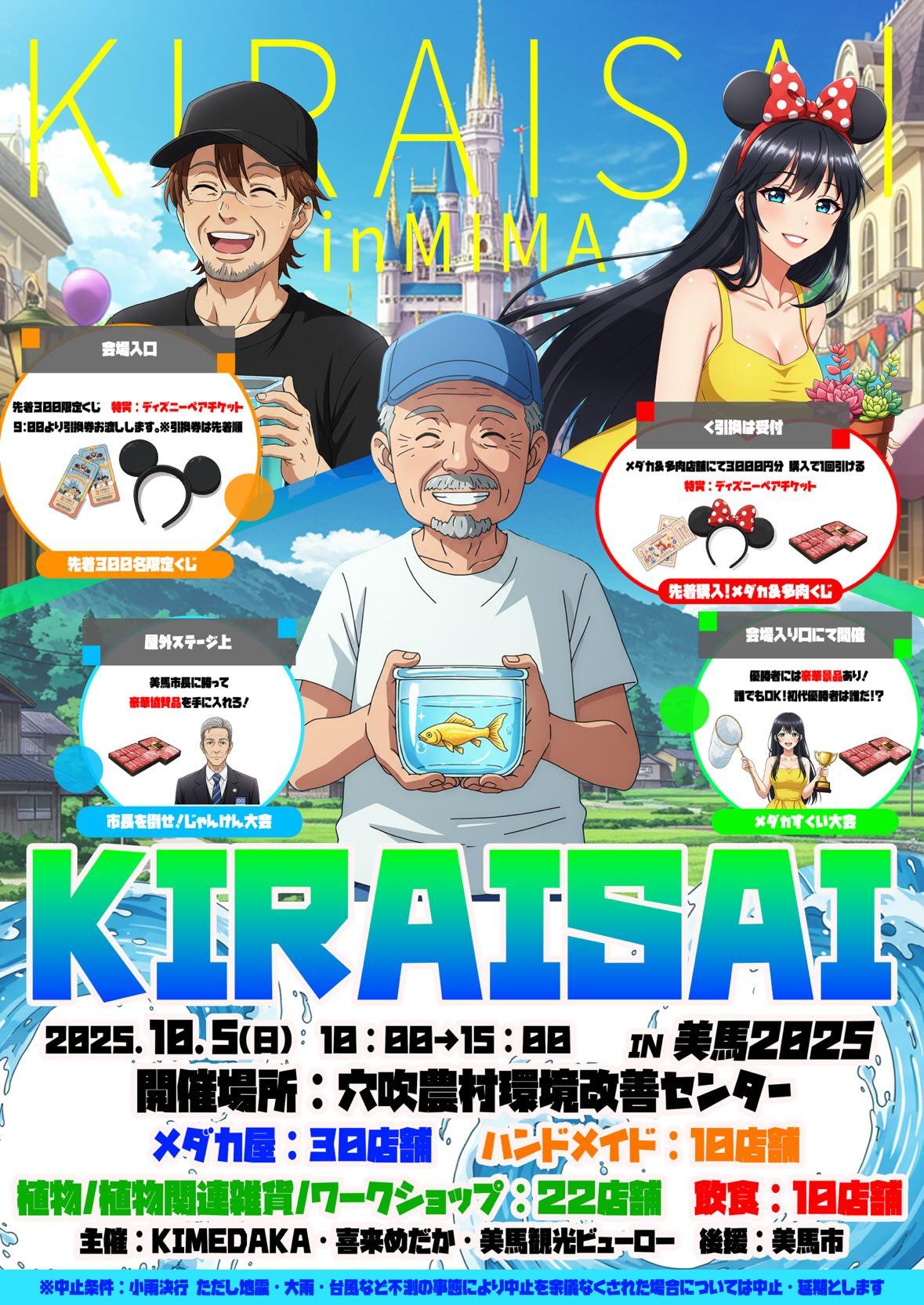 『気来祭(キライサイ)』というイベントで、メダカや多肉を中心にハンドメイドやワークショップのブースも出るみたいです(*´▽`*)花みどりからはその時期のちょっと珍しい観葉植物や多肉植物あたりをメインに持っていくみたいです( *´艸`)