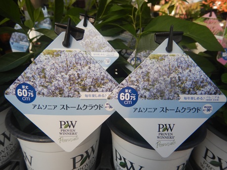 今期の注目は、出る出る言って今まで出荷がなかった『アムソニア』…ですかね( *´艸`)初めて実物を拝見しました(笑)ハクサンコーナー、ブルーベリーコーナー前に出現してます(*´▽`*)覗いてみてね(*´ω`*)