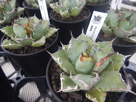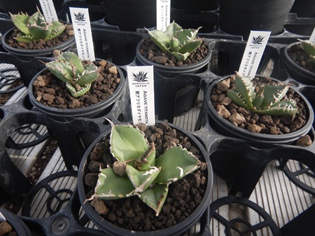 アガベがいっぱい入ってきてます(≧▽≦)手のひらサイズはいろいろ揃えたくなるよね(*´ω`*)