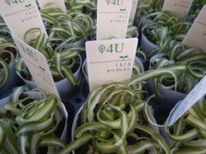 観葉植物コーナーにきらっきらの『どらやき』さんや、くるっくるの『オリヅルラン』がはいってます(*´▽`*)ちょっと珍しいフィカス『ブルールビー』もぜひ見てみてね(*^-^*)
