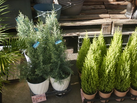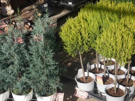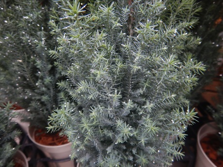 ラメ付きコニファーは限定入荷。シルバーリーフにブルーのお花がステキなミニシクラメン『月下』もステキ( *´艸`)